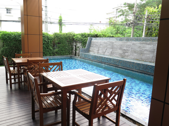 トンローの閑静な住宅街トンローソイ25に立地しています。トンローの大通りスクンビットソイ55の奥にありますが、日本村のあるトンローソイ13までアクセスが良く、日本食の食事など気軽にたのしめます。トンローソイ13に接したスクンビットソイ49には日本語が通じるサミティベート病院があり、病気や怪我の際も安心です。また、同ソイには日本食材が豊富なフジスーパー4号店がありたいへん便利です。交通については、BTSトンロー駅まで歩くと20分はかかりますが、シャトルサービスがありますので、日々のお買い物などに不便はありません。センセープ運河ボートの乗船場が近いので、セントラルワールドのあるプラトゥーナムまで渋滞なしの格安運賃で移動できます。